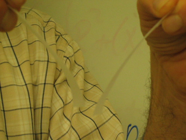 - Pull two equal-length pieces of tape from a dispenser and hold them vertically in each hand. Slowly bring them closer together so the class can see that they do not attract each other. Fold the sticky end of each piece to make non-sticky handles. Attach the sticky side of one tape to the non-sticky side of the other, achieving maximum overlap. Pull the tapes apart, then slowly bring them closer together (preferably with non-sticky sides facing each other). It should become very obvious that the tapes are attracted toward each other before they get close enough to touch. Point out that the closer they are the more strongly they attract each other. (Use colored tape for better visibility.)