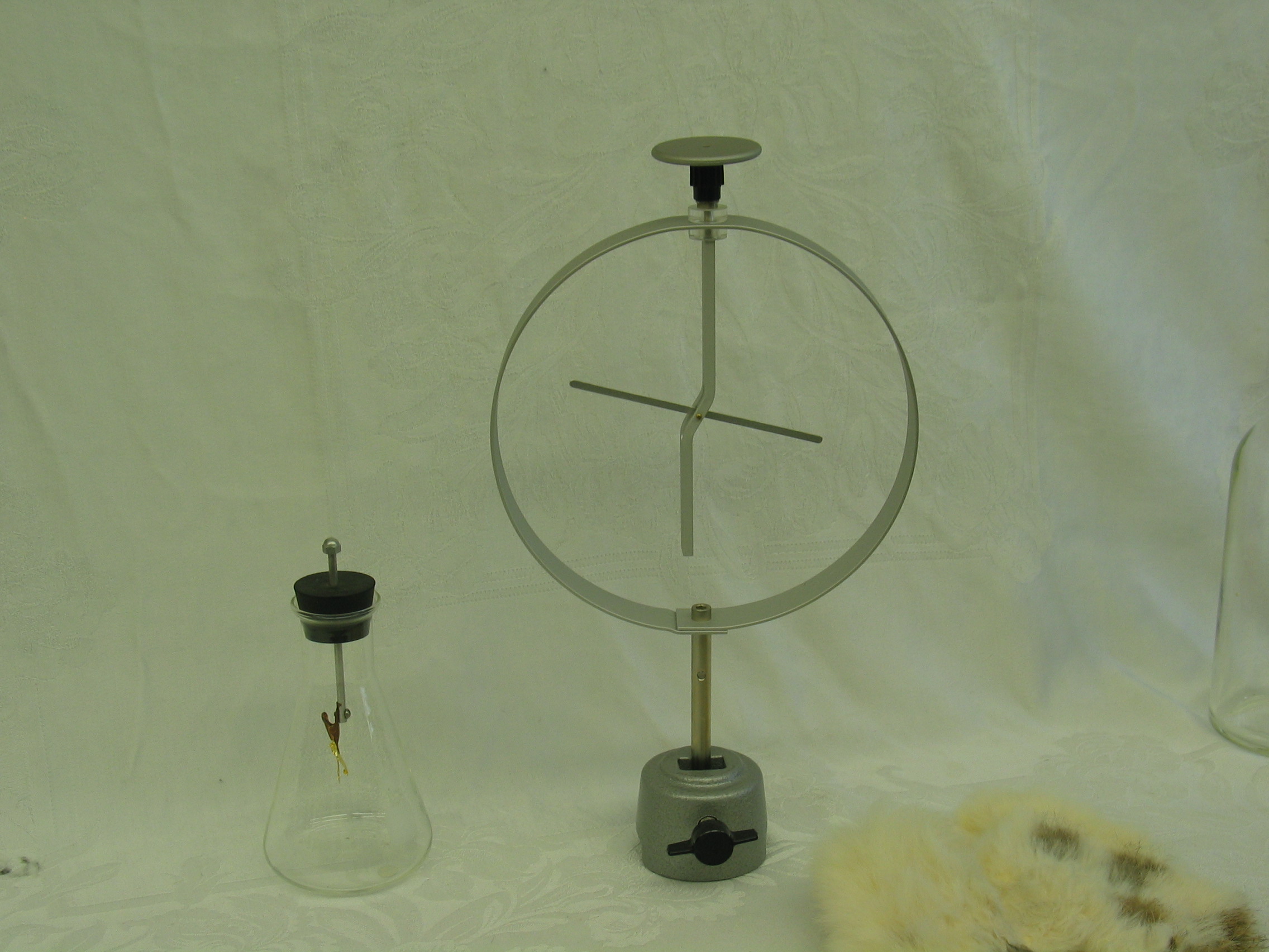 (The smaller electroscope in the Erlenmeyer flask (shown on left) works better when it�s humid, but is not easily seen from a distance.)