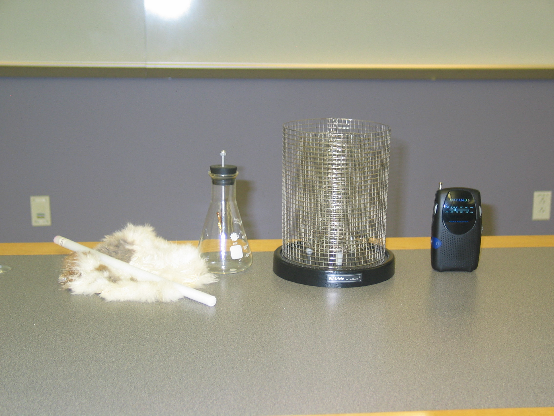 Room 146; Teflon rod, fur and Erlenmeyer flask, L2; wire cage and radio, L6