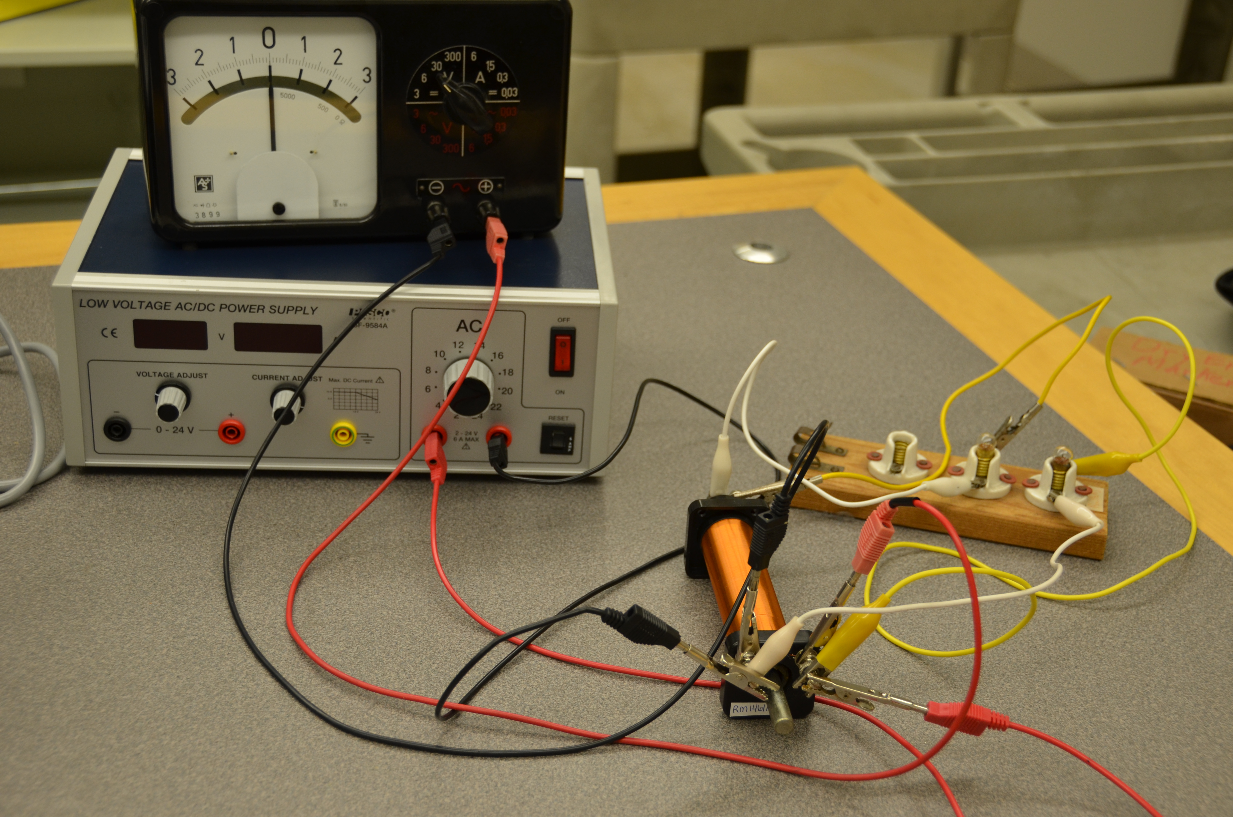 - Room 146; shelf N3, alligator clips on B2, Low voltage power supply on E5