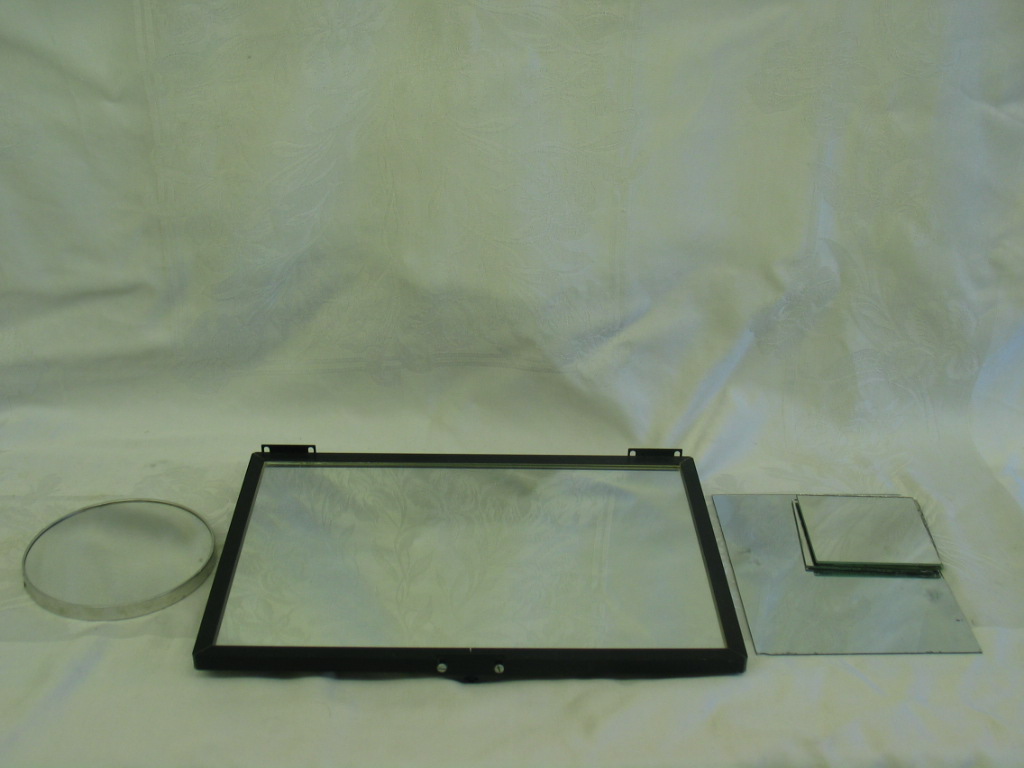 - room 146, shelf O6 (assorted plane mirrors and a round, concave �makeup� mirror)(left photo); large concave and convex mirrors (with explanatory manual) are on old ripple tank stand by wall adjoining room 144
