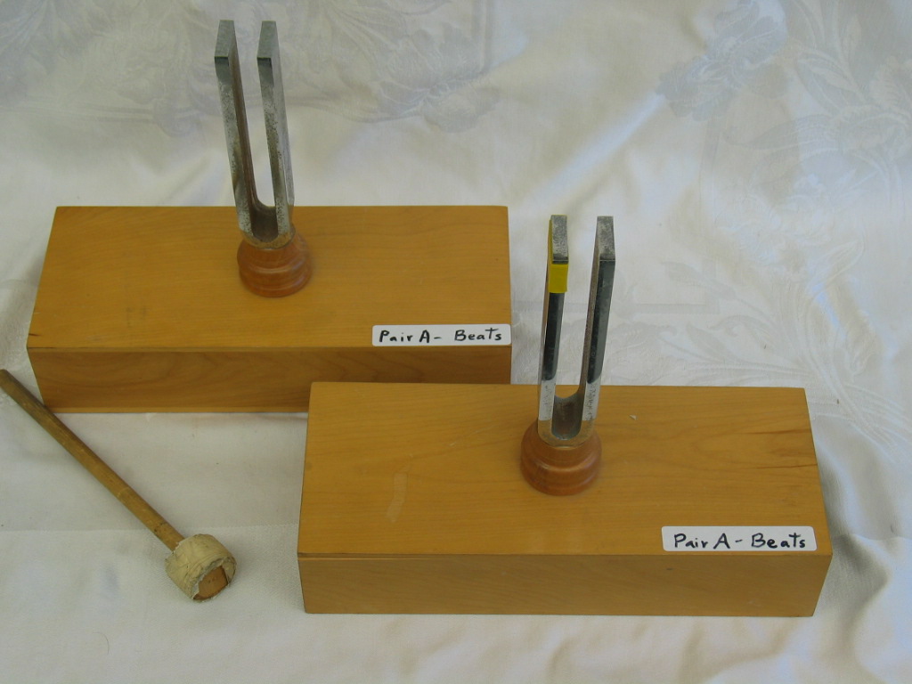 - Using pair A, you can demonstrate audible beats by striking both tuning forks in rapid succession. The forks are identical except that one has a piece of yellow tape on it to lower its natural pitch slightly.