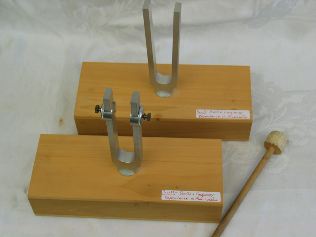 - Pair B can be used if you also want to demonstrate how the natural pitch of a tuning fork changes by changing the location of the adjustable masses on one fork. This also permits one to change the beat frequency using this pair.