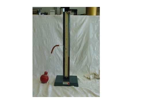 - Before using the large manometer, loosen or remove the stopper in the end that opens to atmosphere. Squeeze the bulb on the syringe to change the pressure on the other leg of the manometer and observe the columns of colored water change height due to the differential pressure.