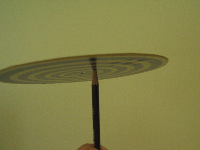 - Although this disc is circular and it would appear �obvious� that its center of gravity should be in at its geometric center, a simple attempt to balance it there shows otherwise. (What could cause this?) An unseen, off-center mass has been concealed inside the disc, so it balances, nearly an inch away from center, by the other hole (more easily done on your fingertip). You can also show that it rotates much more easily about a pencil point placed at its center of mass (or gravity) than one placed at its geometric center.