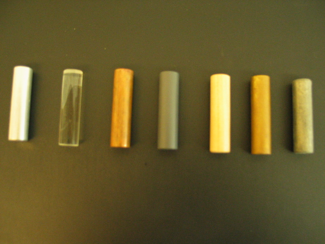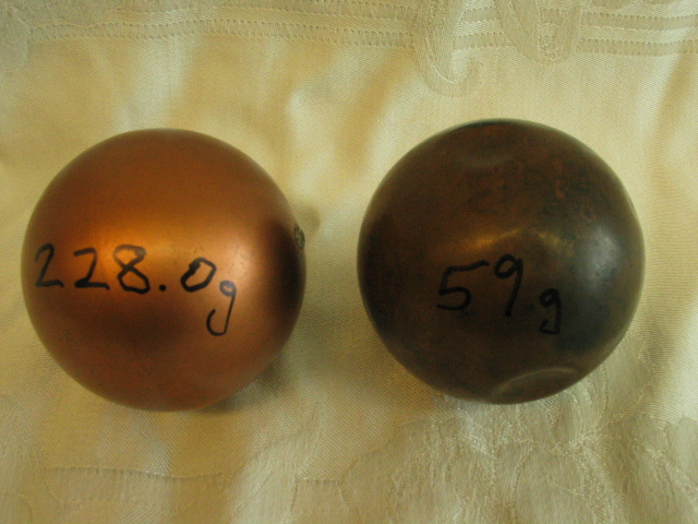 - The set of cylindrical masses (left photo) all have approximately the same volume, but they are made of different materials, so their densities, and therefore their masses differ. This is easily detected by individually bouncing the masses up and down in one�s hand and feeling the differences in inertia. The spheres also have about the same volume, but different contents and materials, so one is much heavier than the other and therefore has a much greater average density. Pass them around for students to feel the differences.