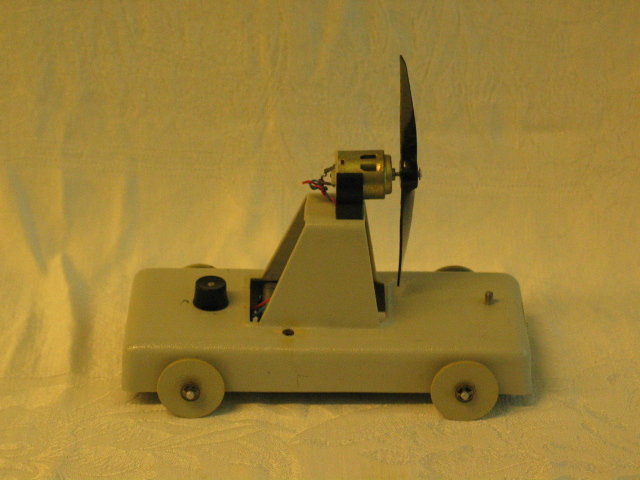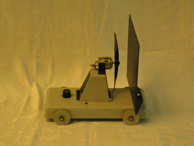 - Set the black "sail" perpendicular to the fan and ask the students which way the cart will go when you turn on the fan, then do it. Repeat the procedure with the "sail" removed from the cart.