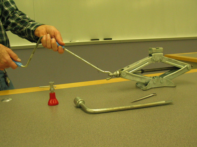 - A small machinist�s jack and a common car jack can be used to show how the principle of the inclined plane is used in screw jacks. The wheel and axle principle is also employed in the handle s of these jacks to gain greater mechanical advantage. The tapered end of the wrench and the pointed end of the tire iron can be used to show how the principle of the wedge is used to pry or separate things, and the long handle on the wrench provides an additional example of the use of leverage.