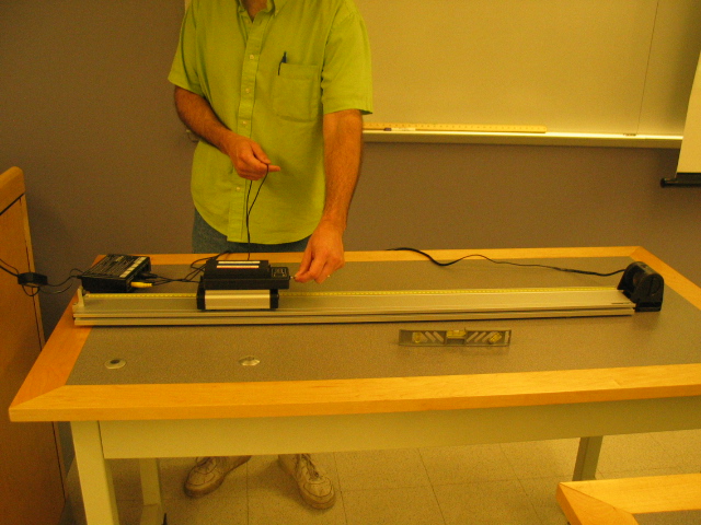 To show graphically that net force and acceleration are linearly related and that force may be defined as mass x acceleration. (Display using podium.)