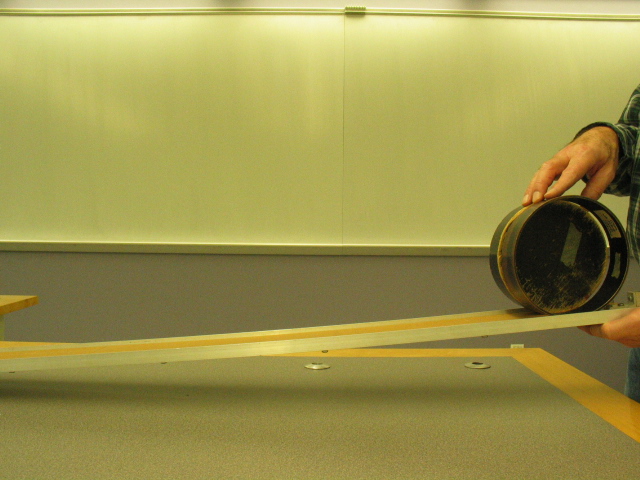 - To show that two circular objects having the same mass and diameter, but different rotational inertia will accelerate down the ramp at different rates.