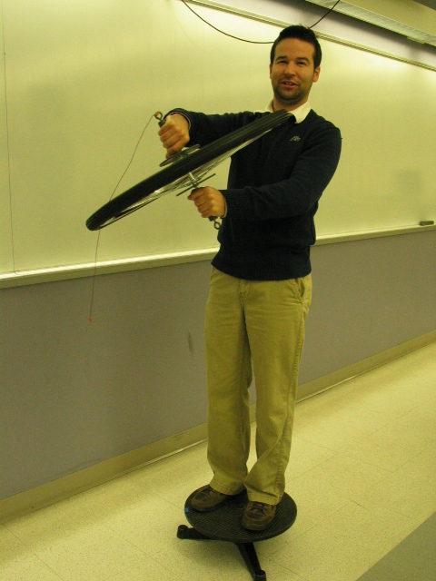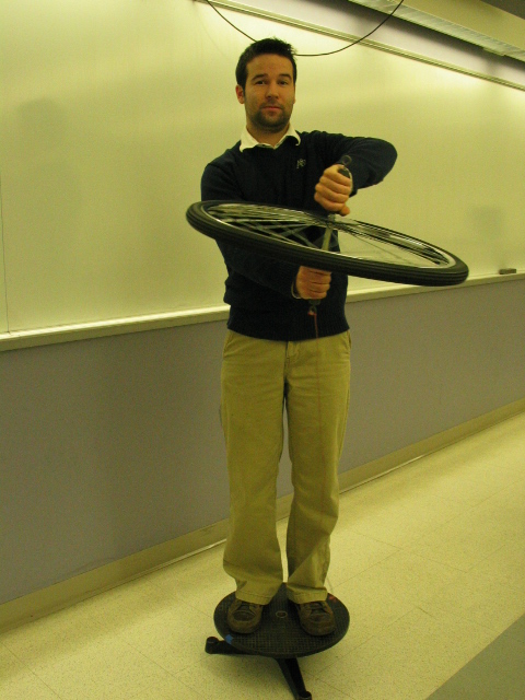 - To show that a student can control their rotation by �steering� with a spinning bicycle wheel.