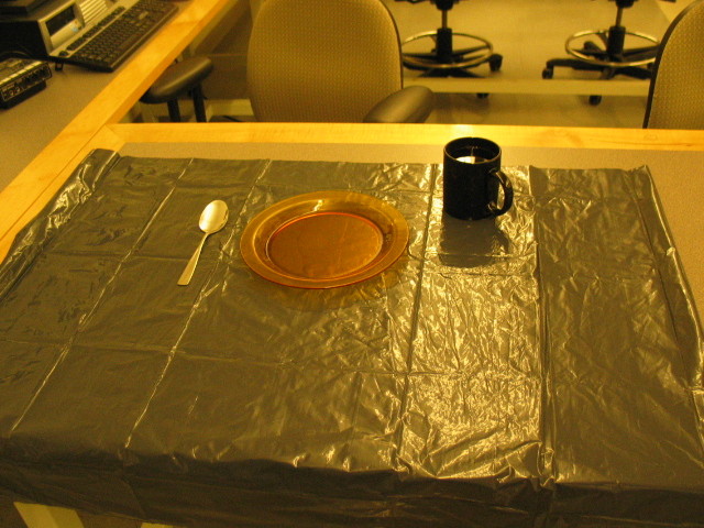 - A classic magician's trick! Set a place on the table cloth using the plate, spoon and cup. Then swiftly and surely, pull the table cloth slightly downward and out from under them, leaving them in place. If you're good at it, try putting water in the cup! Practice recommended.