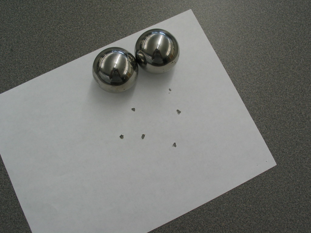 - Have someone hold a blank piece of paper vertically in front of you and smash the two steel balls together with the paper in between. The kinetic energy from the collision is turned into thermal energy and sound. The heat is enough to burn a small hole in the piece of paper.